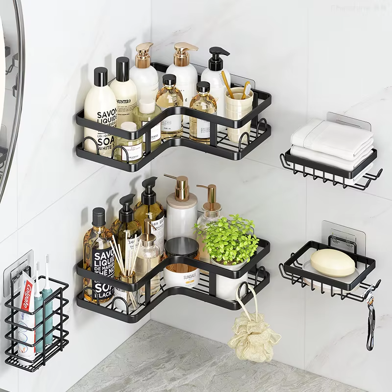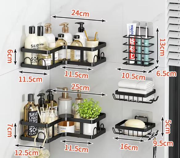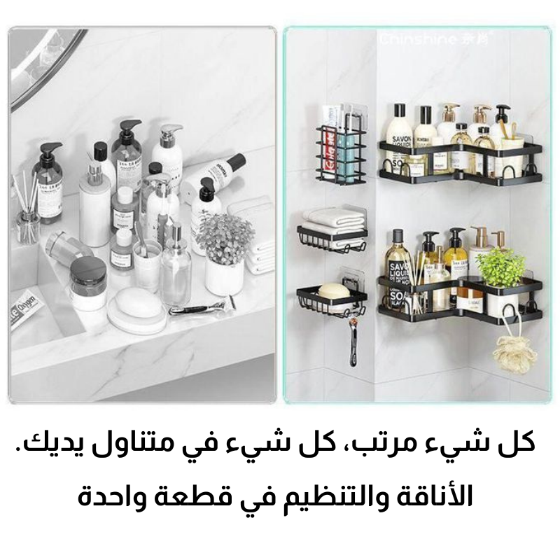 رف جداري متعدد الاستعمالات للحمام والمطبخ، عملي وأنيق كيساعدك تحافظ على النظام ويخلي كل حاجة في بلاصتها.